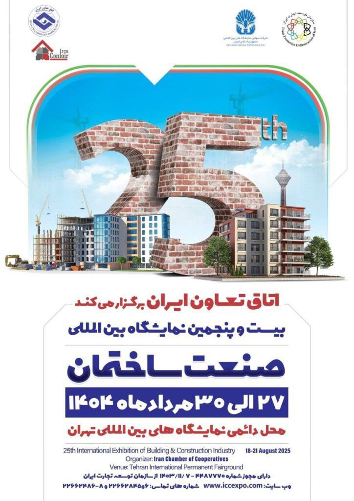 بیستوپنجمین نمایشگاه بینالمللی صنعت ساختمان ایران در تاریخ ۲۷-۳۰ مرداد ۱۴۰۴ با تمرکز بر بخشهایی چون مصالح و تجهیزات، تاسیسات، خدمات مهندسی، فناوریهای نوین ساخت و طراحی شهری در تهران برگزار خواهد گردید.